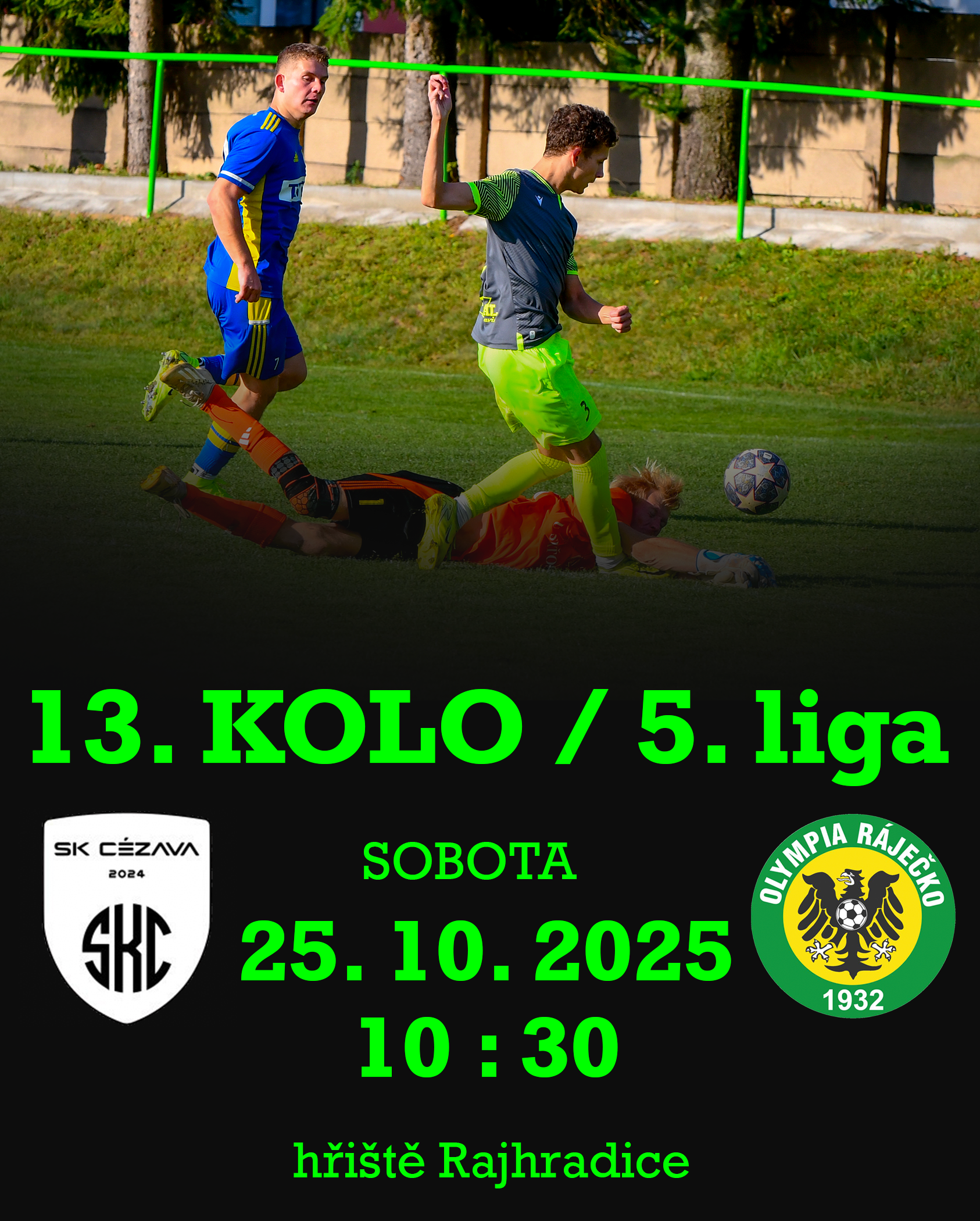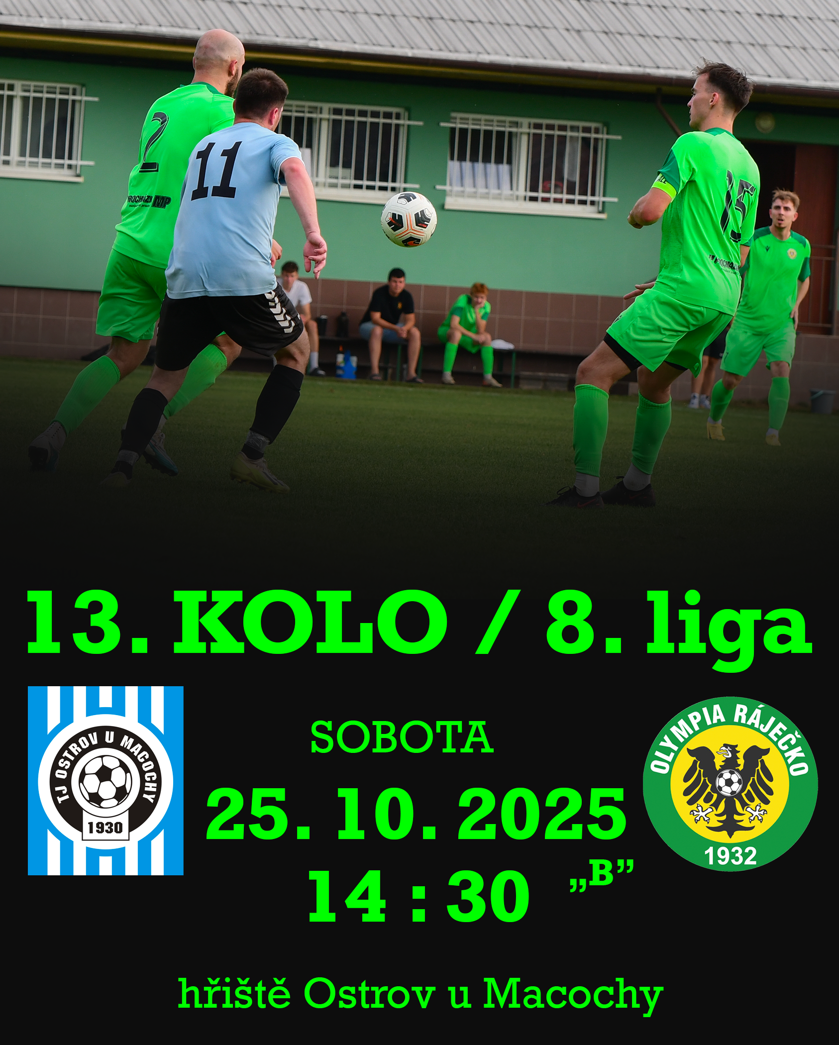 V sobotu 25. října se představí oba celky na hřištích soupeřů. Nejprve A mužstvo dopoledne sehraje své utkání v Rajhradicích proti Cézavě. A odpoledne B tým svede souboj o body na půdě Ostrova u Macochy.